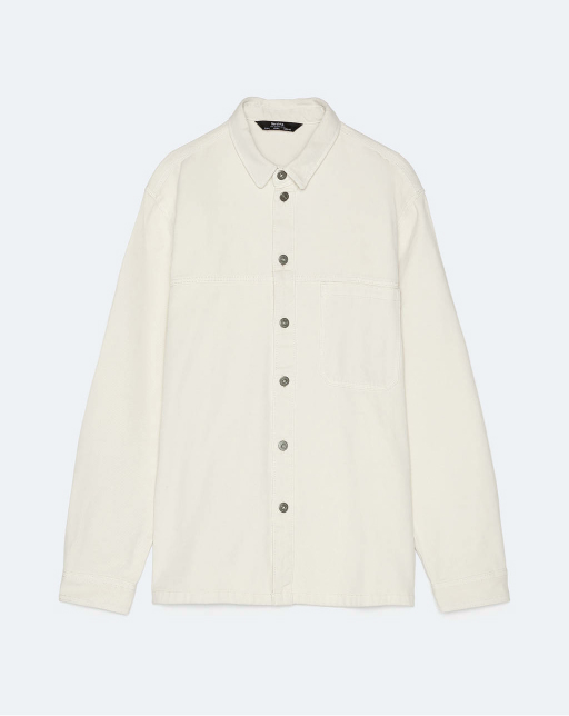 The insulated jacket is made of leather. A light layer of insulation. Details: stand-up collar, zipper, two pockets on the sides.